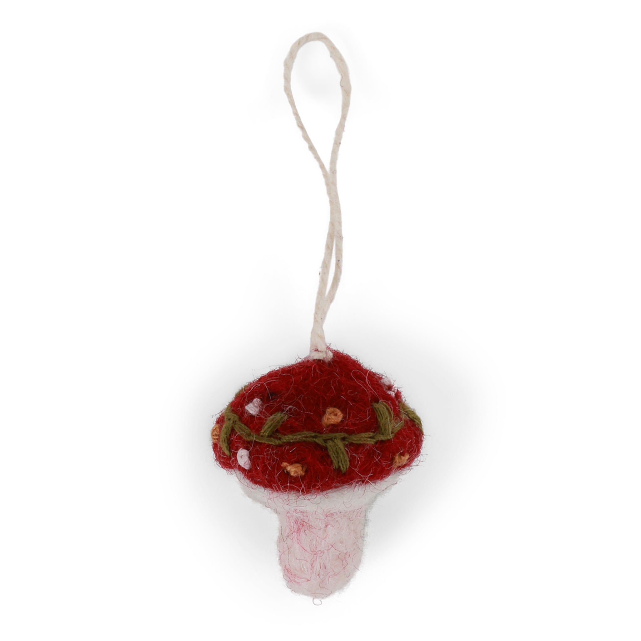 Lad naturens finurlige former finde vej ind i din juledekoration med denne smukke svamp i filt med broderi fra Gry & Sif. Hver svamp er håndlavet i Nepal af blød 100% uld-filt og dekoreret med sirligt broderi, der tilføjer et poetisk og eventyrligt udtryk.